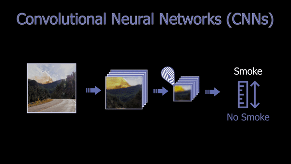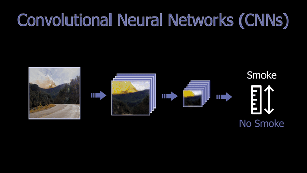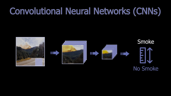 As you may be aware, CNNs are a powerful deep learning architecture for vision-based applications in which, simply said, the image is iteratively compressed, focusing on the information we need about the image while removing redundant and uninformative spatial features, ending up with a confidence rate informing us whether the image contains what we were looking for or not. This focus can be on anything, from detecting cats, humans, objects, to detecting smoke in this case. It all depends on the data it is trained on, but the overall architecture and working will stay the same. You can see CNNs as compressing the image, focusing on a specific feature of the image at every step, getting more compressed and relevant to what we want the deeper we get in the network.