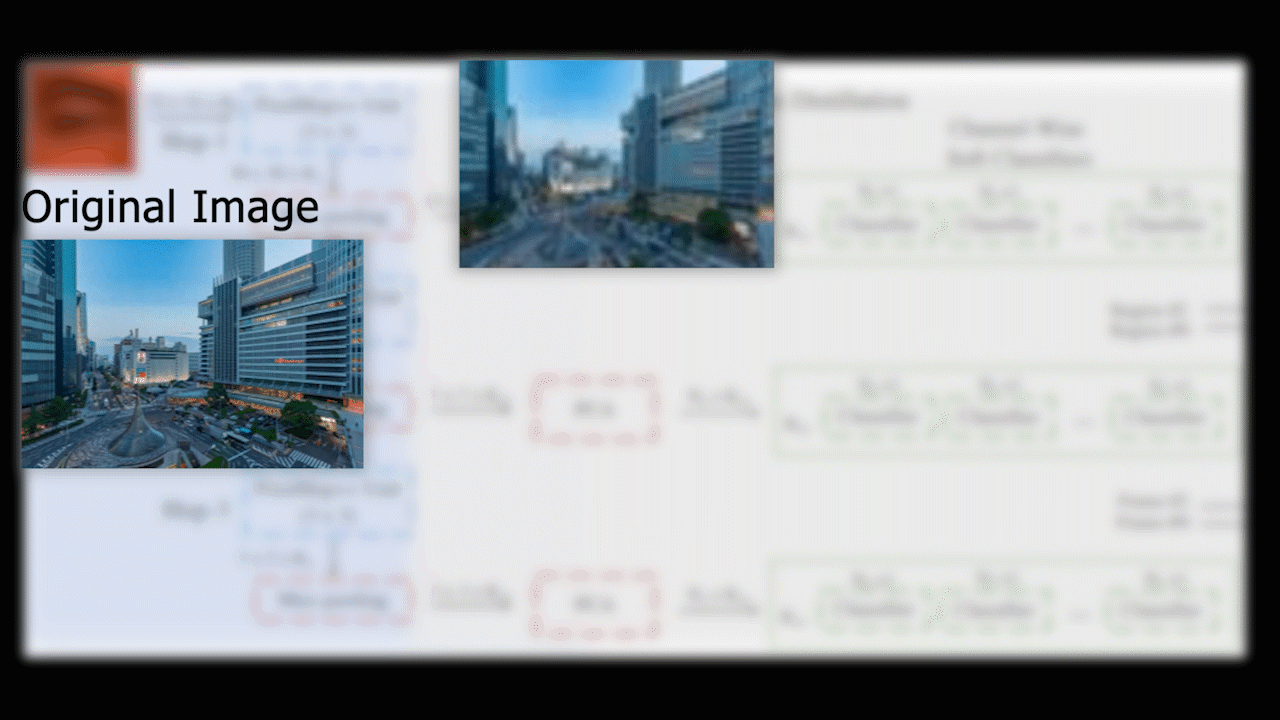 You can see this as squeezing all the helpful juice at different levels of details of the cropped image to finally decide whether it is fake or not, using both detailed and general information in the decision process (step 4 in orange).