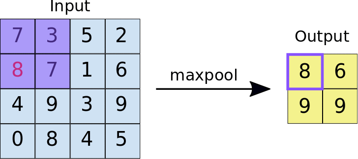 They are simply taking the maximum value of each square of two by two pixels, reducing the image size by a factor of four at each step.