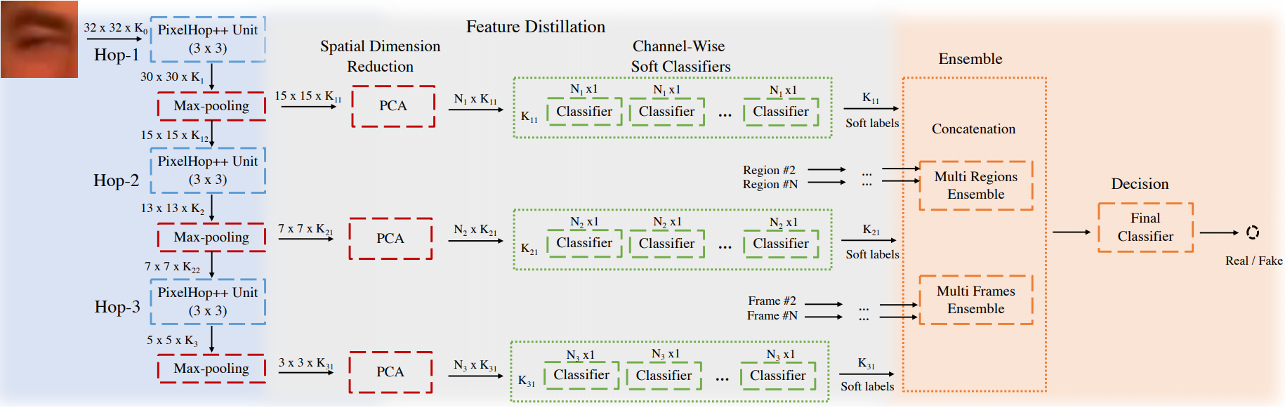 DeepFakeHop works in four steps.