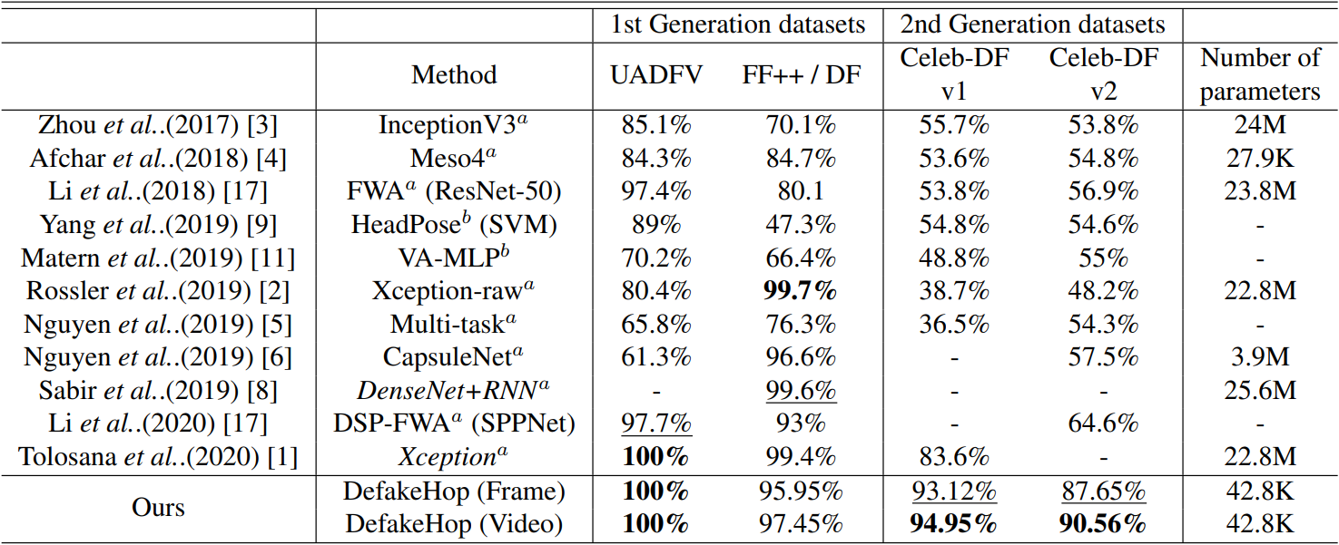 - DeepFakeHop: Chen, Hong-Shuo et al., (2021), “DefakeHop: A Light-Weight High-Performance Deepfake Detector.” ArXiv abs/2103.06929